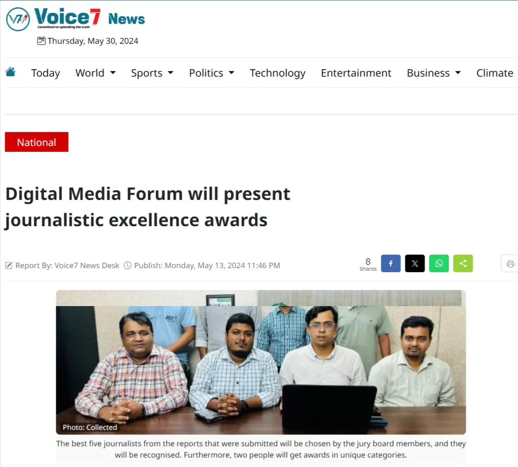 আগামী ১৪ মে থেকে ২৪ মে পর্যন্ত সাংবাদিকদের কাছ থেকে রিপোর্ট ও ডিজিটাল ভিডিও কন্টেন্ট লিংক আহ্বান করা হবে।