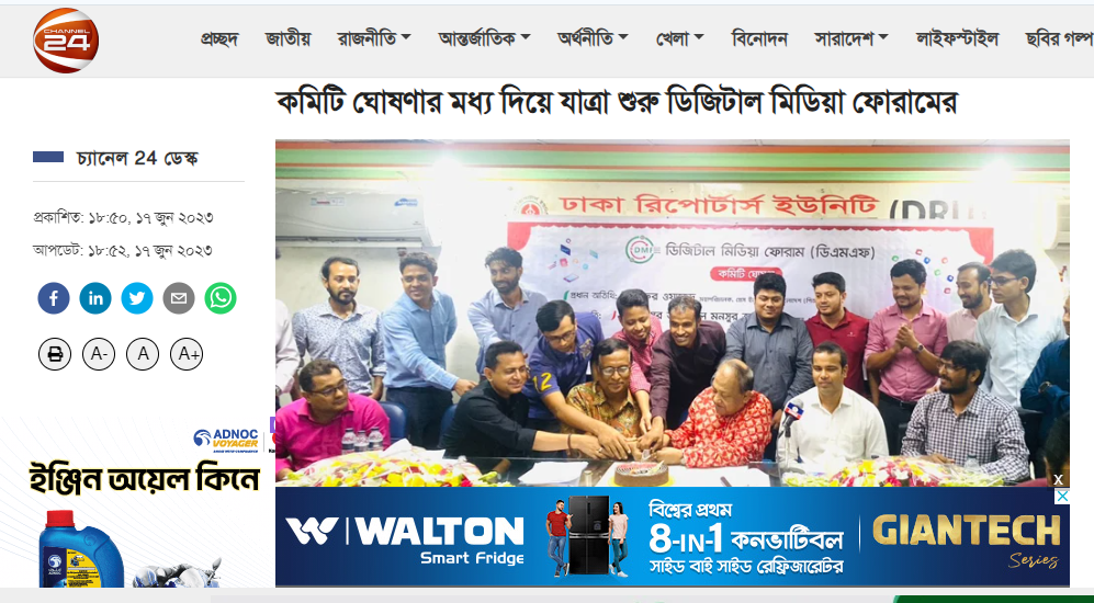 কমিটি ঘোষণার মধ্য দিয়ে যাত্রা শুরু ডিজিটাল মিডিয়া ফোরামের