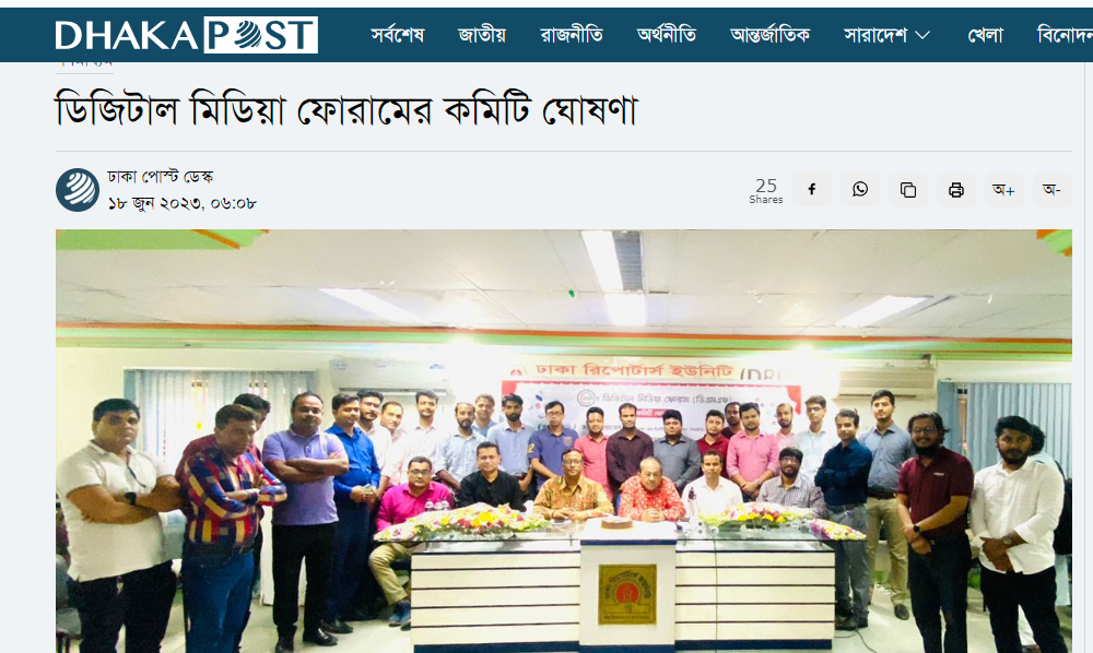 প্রসঙ্গত, দেশের বিভিন্ন মিডিয়ায় কর্মরত সাংবাদিক ও করপোরেট প্রতিষ্ঠানে ডিজিটাল প্ল্যাটফর্মের কর্মীদের মধ্যে পেশাগত সৌহার্দ্য ও ঐক্য বজায় রাখা, ডিজিটাল প্ল্যাটফর্মে বস্তুনিষ্ঠ তথ্য পরিবেশন ও যথাযথ চিত্রে উপস্থাপন করা এবং সর্বোপরি কর্মীদের যোগাযোগের উন্নতি, দক্ষতা বাড়ানো ও আর্থ-সামাজিক উন্নয়নে ডিজিটাল মিডিয়া ফোরাম গঠিত হয়েছে।